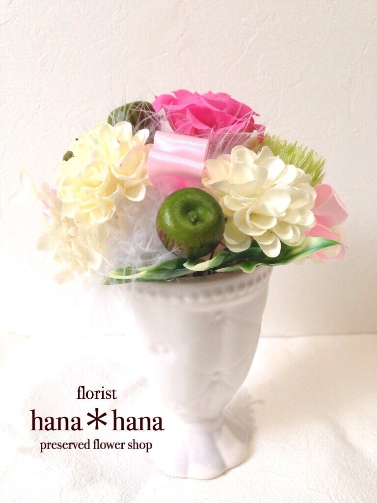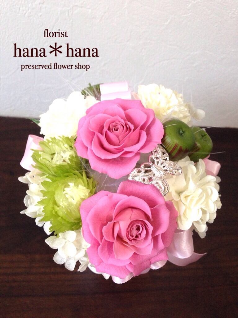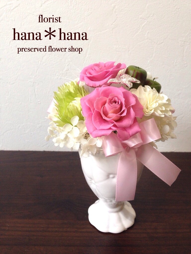 国家資格 フラワー装飾技能士がつくる、プリザーブドフラワーのアレンジメントです。