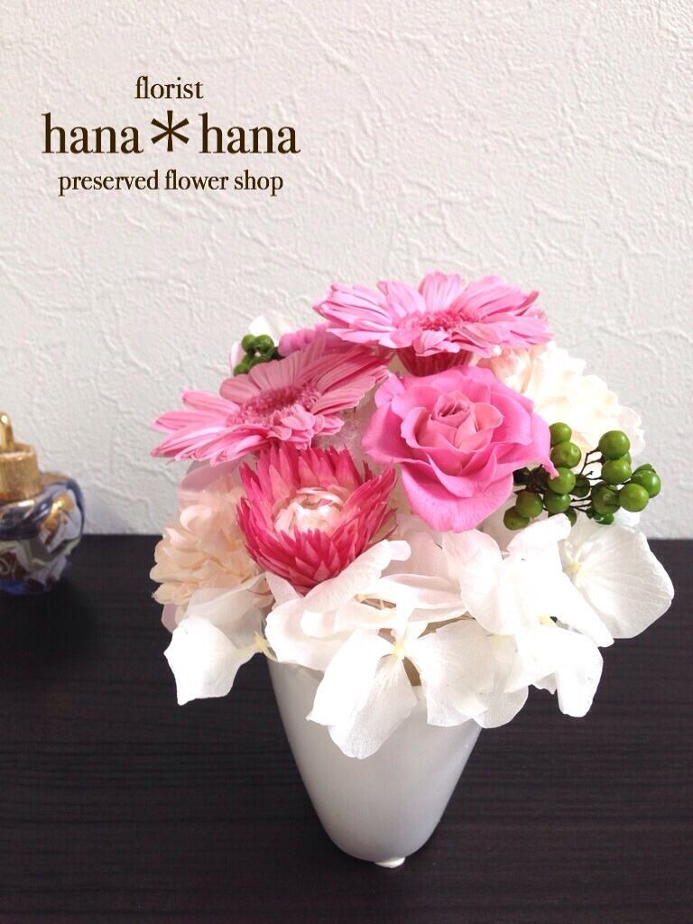 女性の好きな、ピンク色のプリザーブドフラワーのアレンジ。