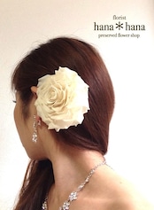 国家資格 フラワー装飾技能士がつくる、プリザーブドフラワーの髪飾りです。