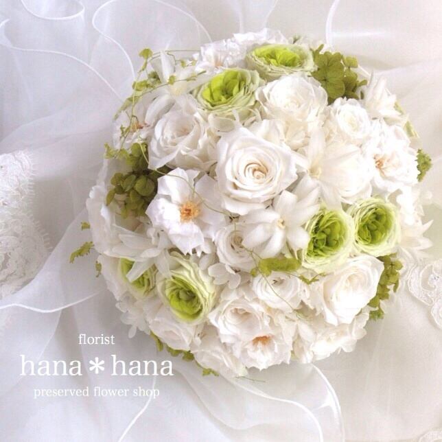 ホワイト×グリーンの爽やかな印象のブーケ…