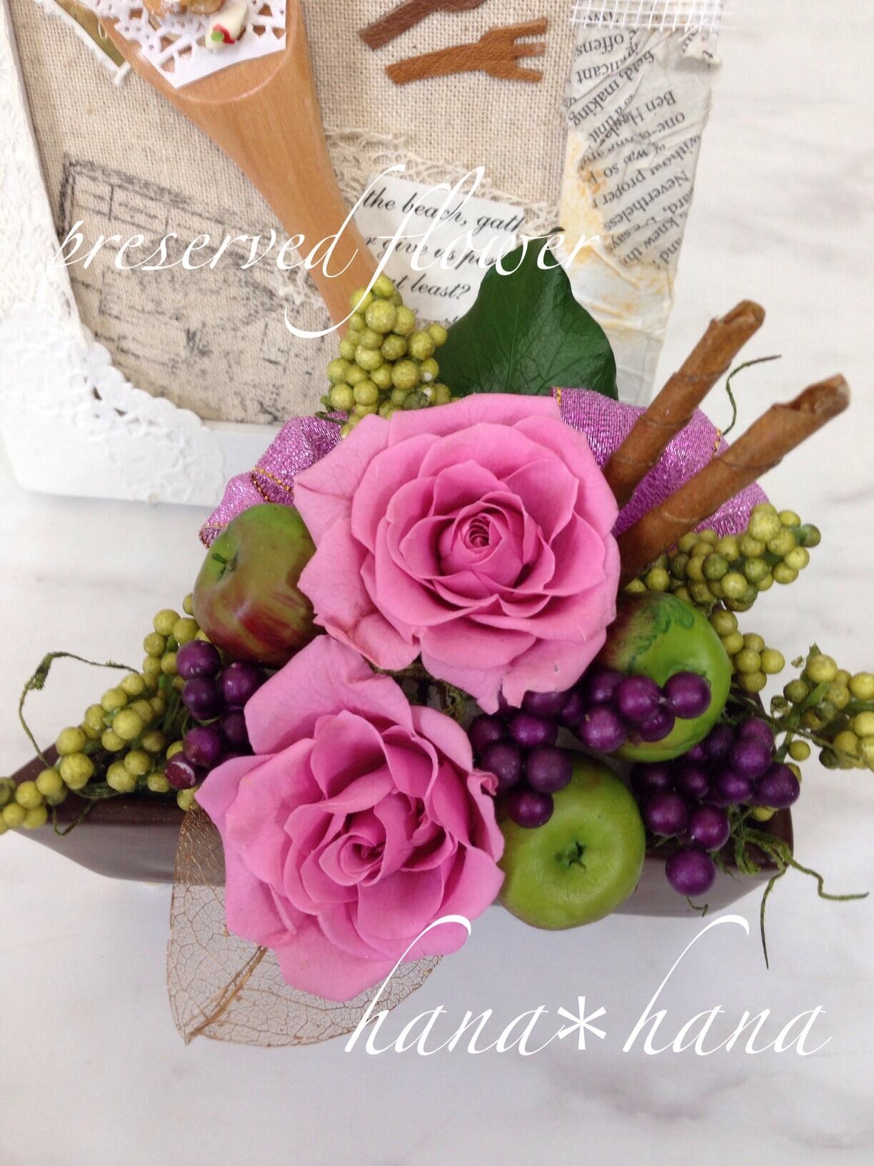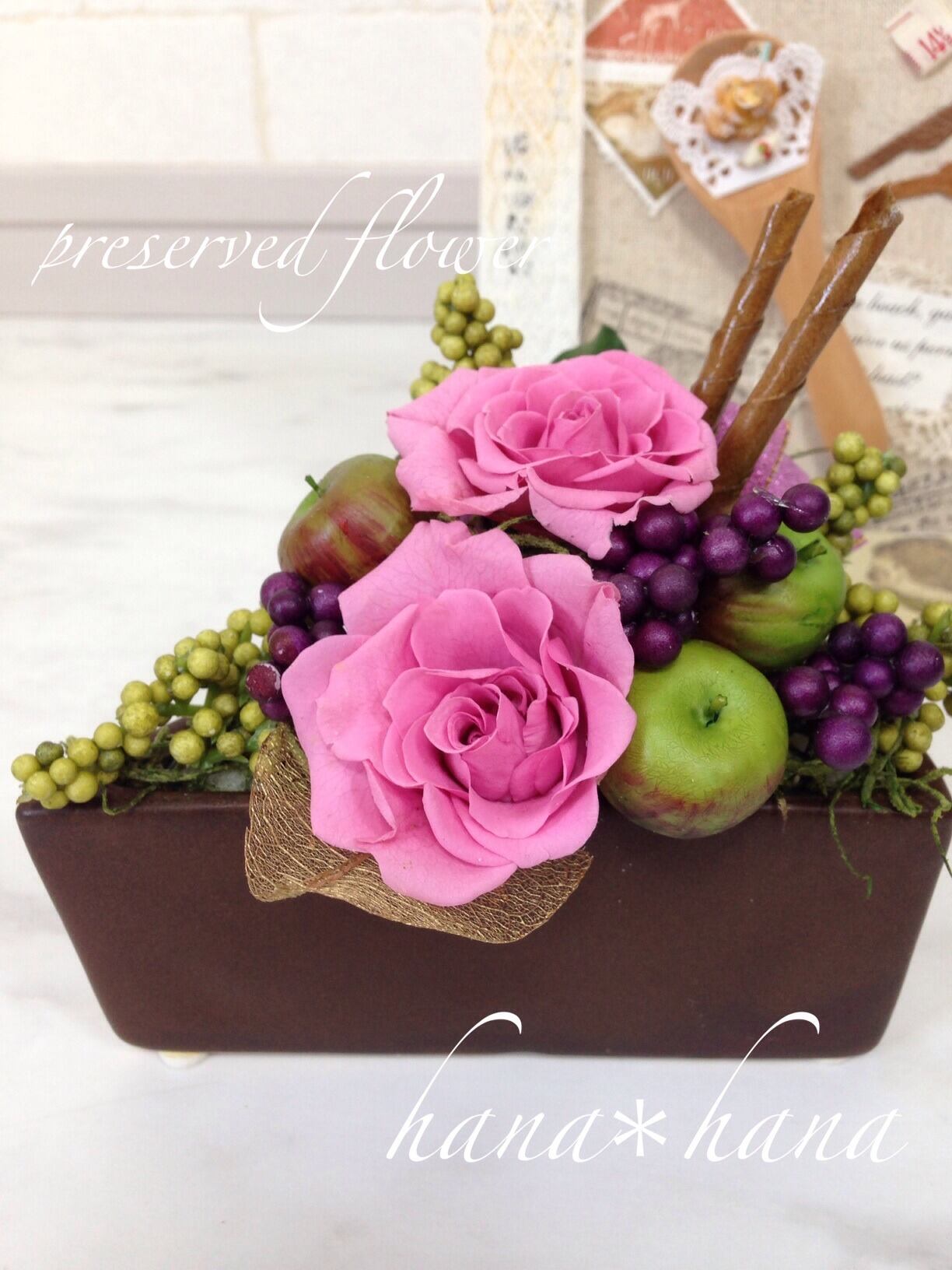国家資格 フラワー装飾技能士がつくる、プリザーブドフラワーのアレンジメントです。