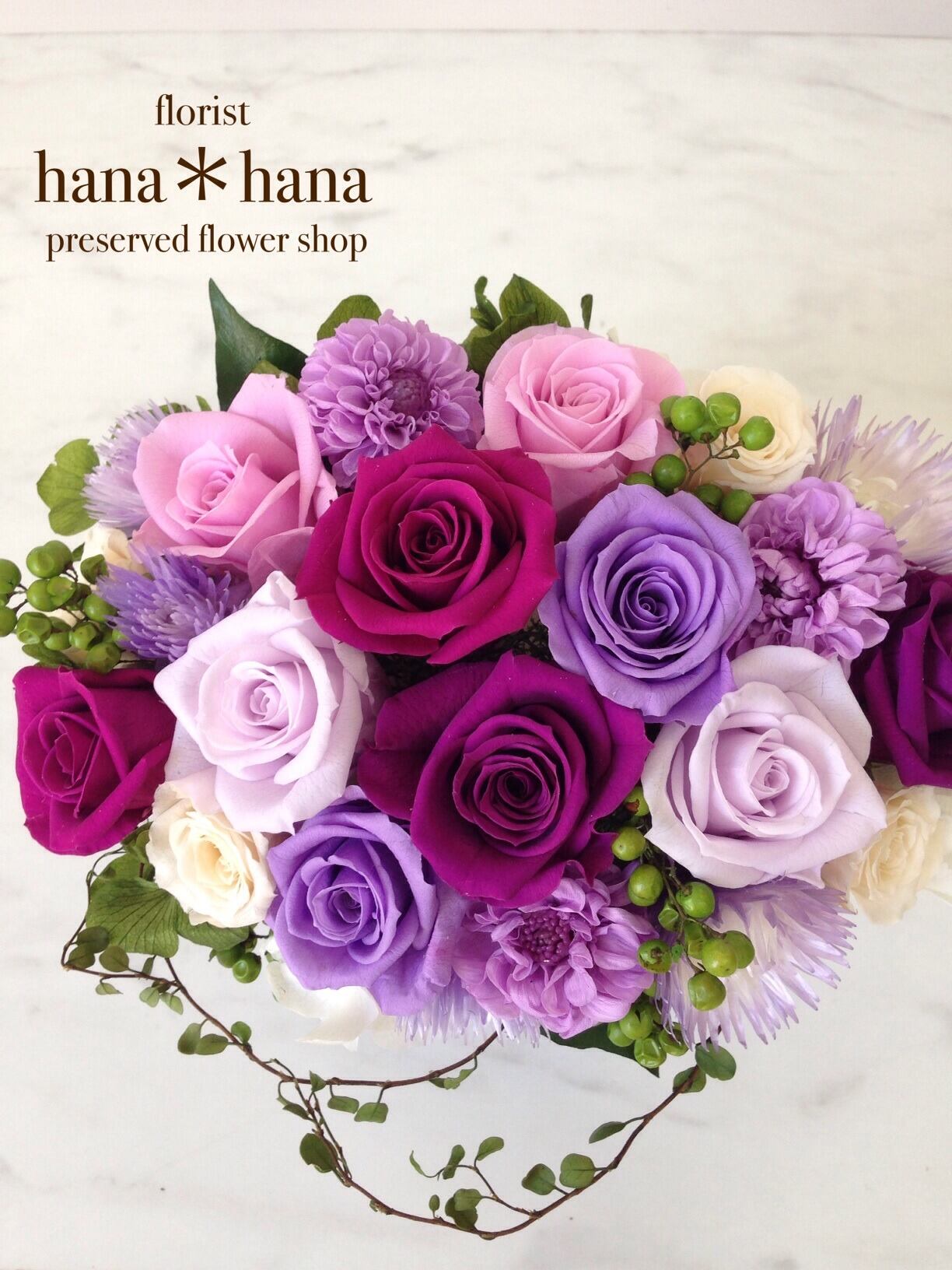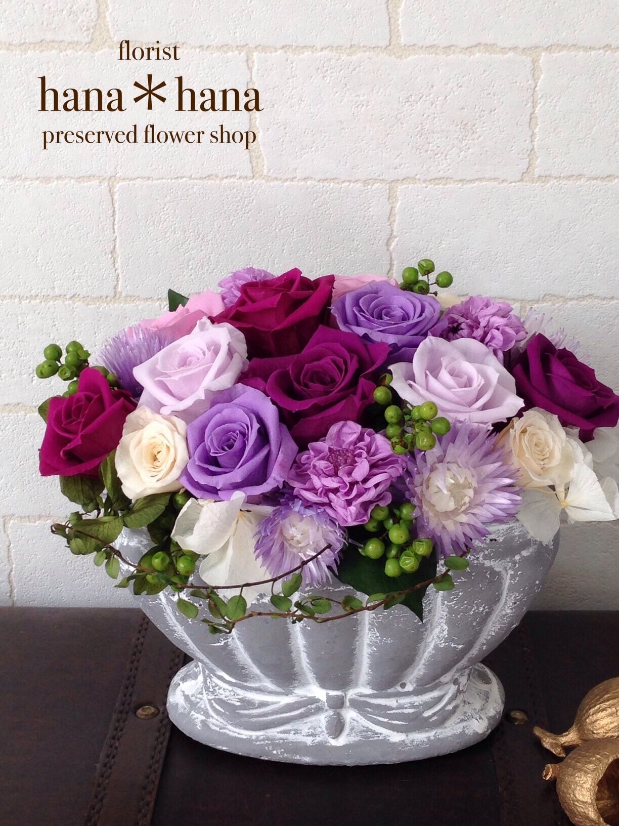 国家資格 フラワー装飾技能士がつくる、プリザーブドフラワーのアレンジメントです。