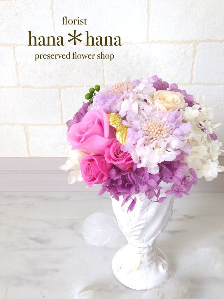 国家資格 フラワー装飾技能士がつくる、プリザーブドフラワーのアレンジメントです。
