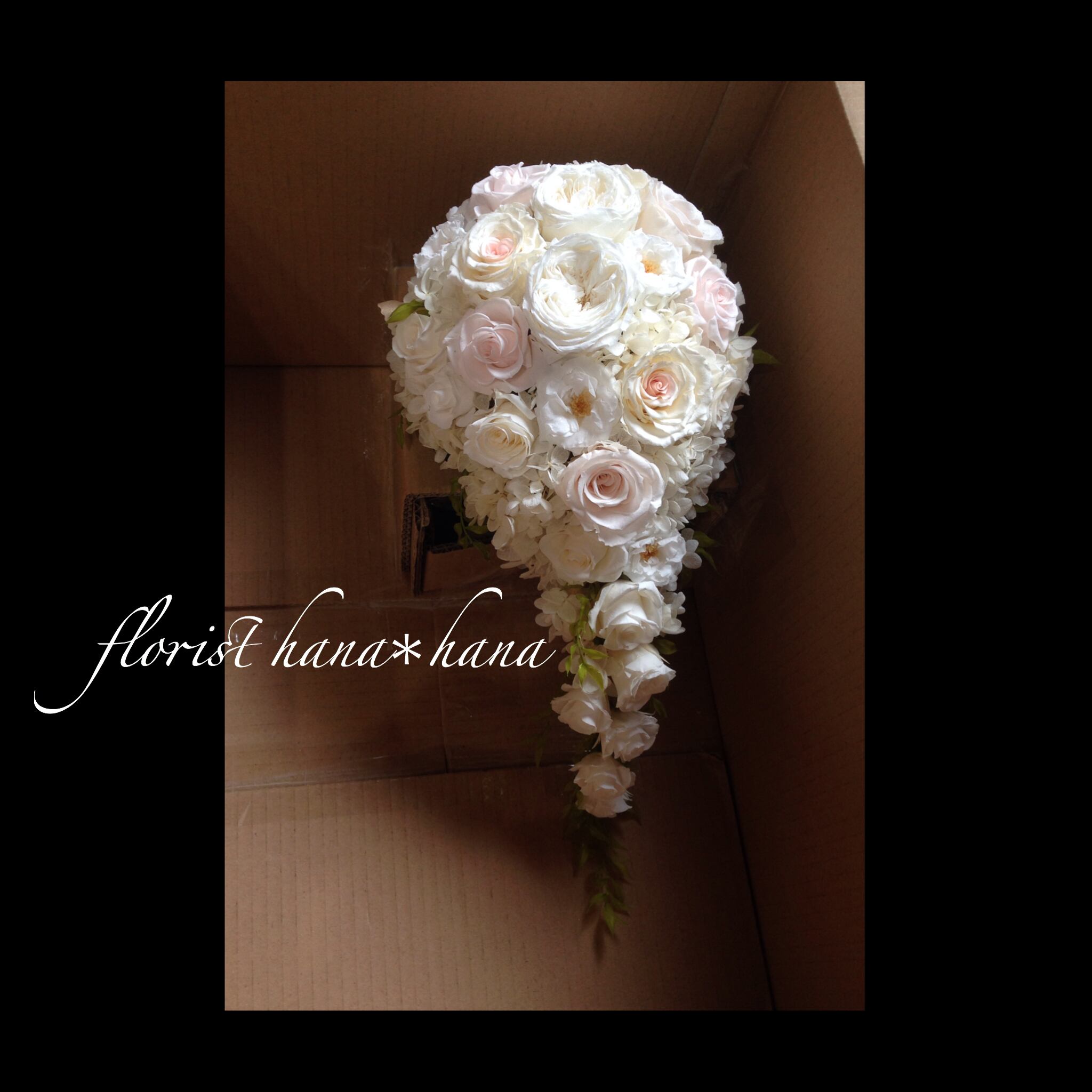 ※ こちらのキャスケードブーケにはブーケスタンド付いておりません。