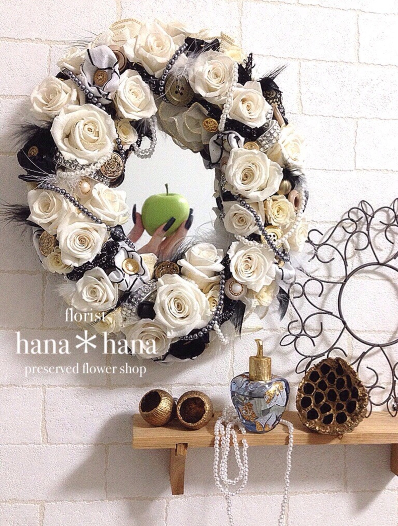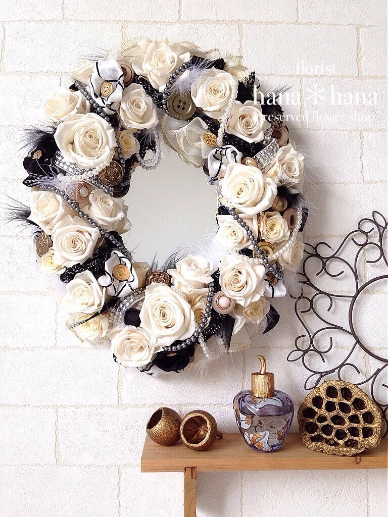 プリザーブドフラワーでアレンジした、豪華な鏡です。